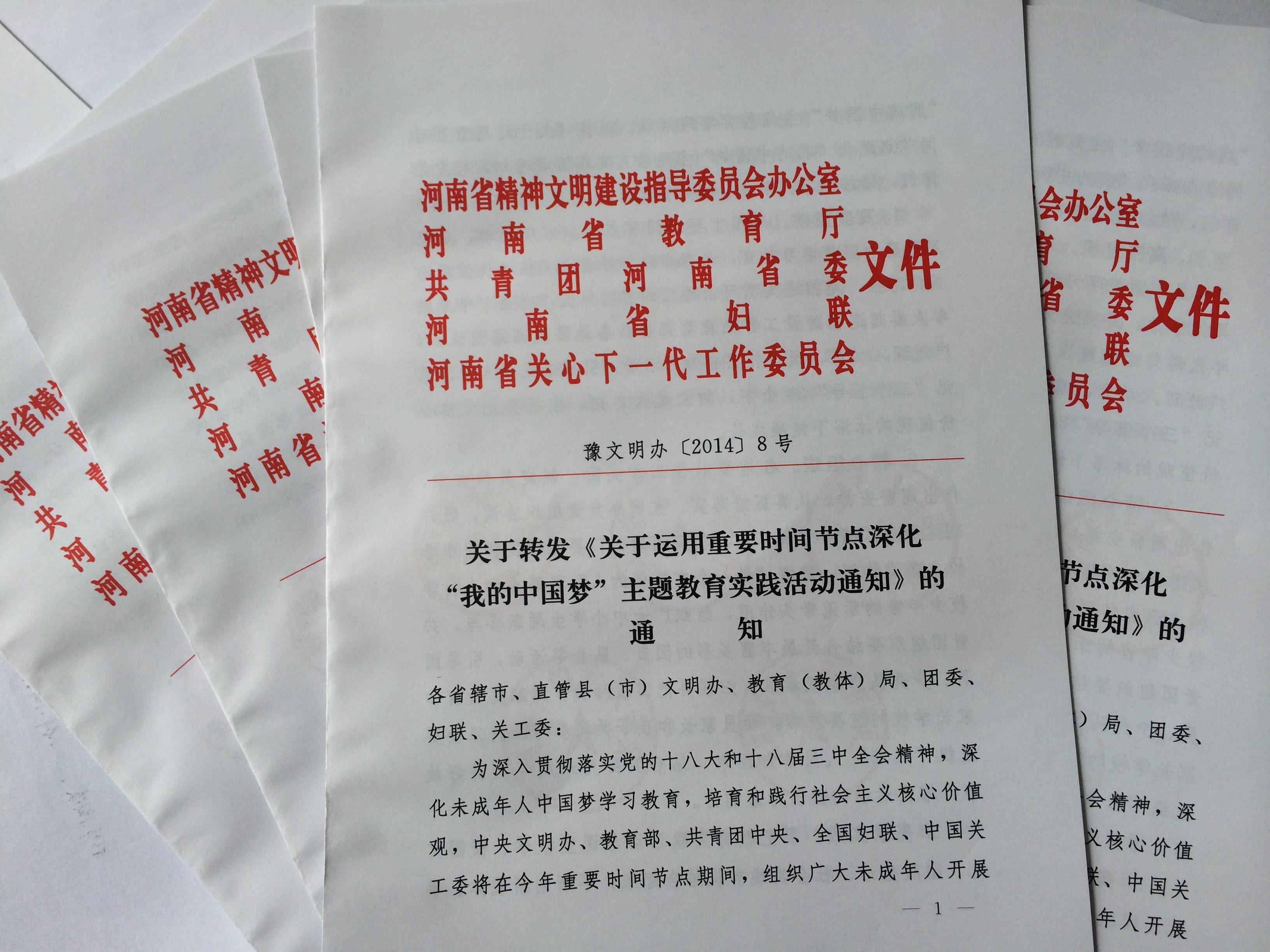 為深入貫徹落實(shí)黨的十八大和十八屆三中全會精神,深化未成年人中國夢學(xué)習(xí)教育,培育和踐行社會主義核心價(jià)值觀,中央文明辦、教育部、共青團(tuán)中央、全國婦聯(lián)、中國關(guān)工委將在今年重要時(shí)間節(jié)點(diǎn)期間,組織廣大未成年人開展“我的中國夢”主題教育實(shí)踐活動(dòng)?,F(xiàn)將《關(guān)于運(yùn)用重要時(shí)間節(jié)點(diǎn)深化“我的中國夢”主題教育實(shí)踐活動(dòng)通知》轉(zhuǎn)發(fā)給你們,請按照下列要求,抓好貫徹落實(shí)。